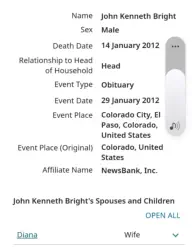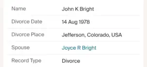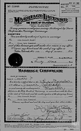 John K Bright Marriage licence to Diana