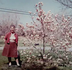 Rose Bright in her garden