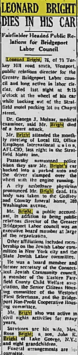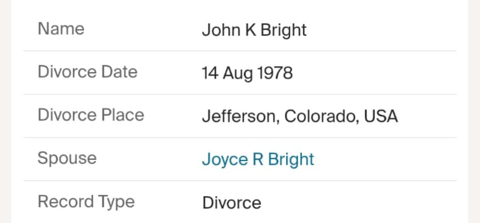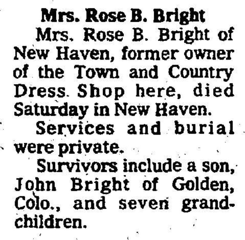 John K Bright was the son of Rose & Leonard Bright . In the 1990's he visited