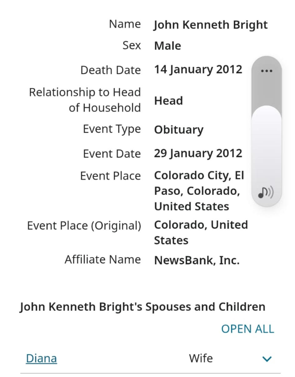 Obituary about John K Bright passing