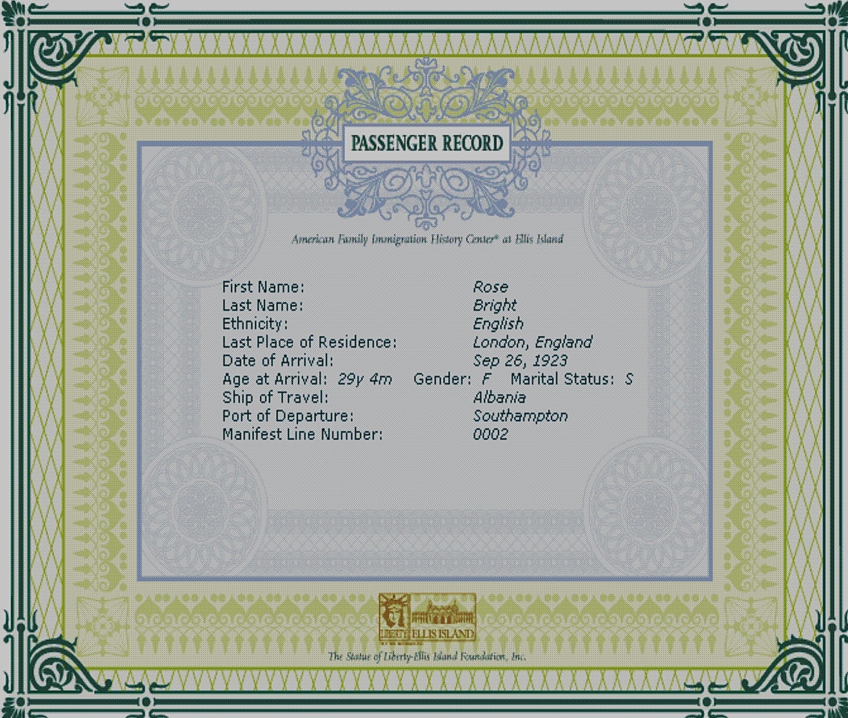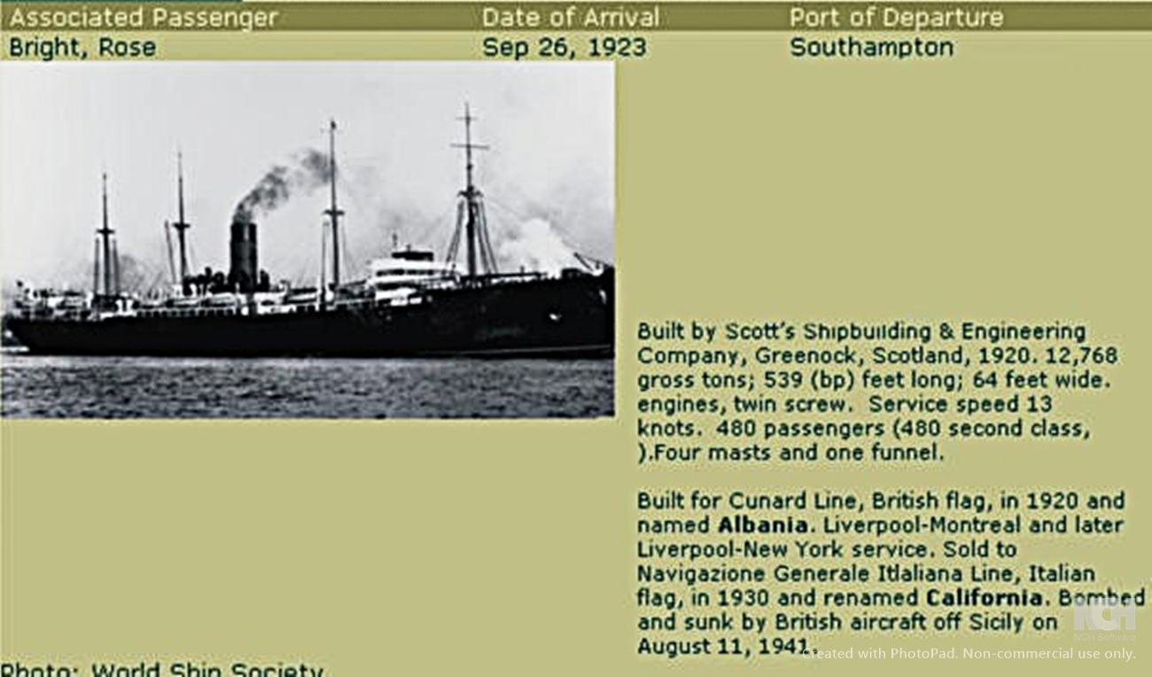 Rose Bright immigration arrival