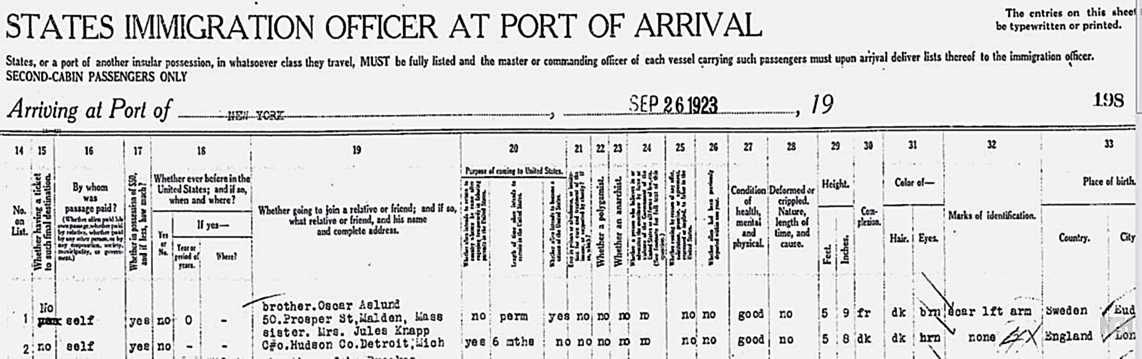 Ellis Island NYC arrival of Rose Bright to USA