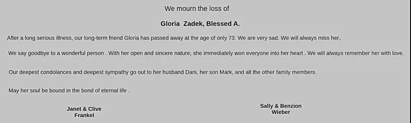 A wonderful eulogy by Gloria & Dani’s dearest friends . July 2023